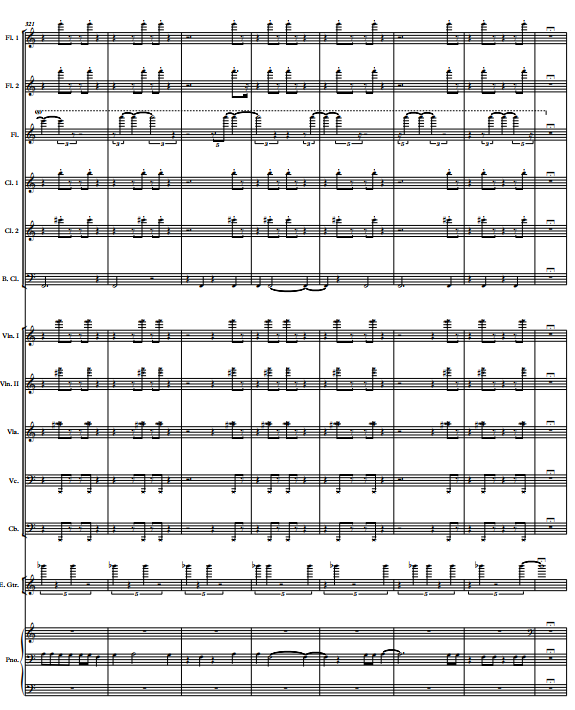 This monumental orchestra piece contains most of the aesthetics used in prior pieces but also announces some “Groove” and “Grind” elements that came years after it.