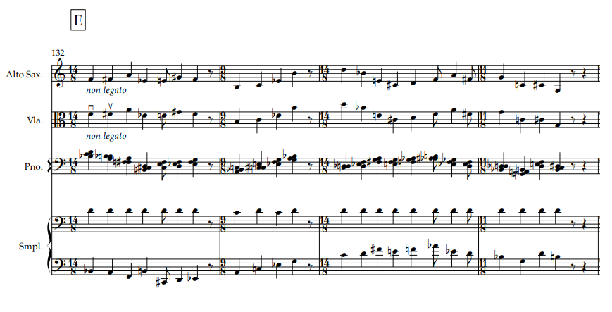 Score excerpt from Into The Groove 1 (Saxophone, Viola, Piano, Sampler)