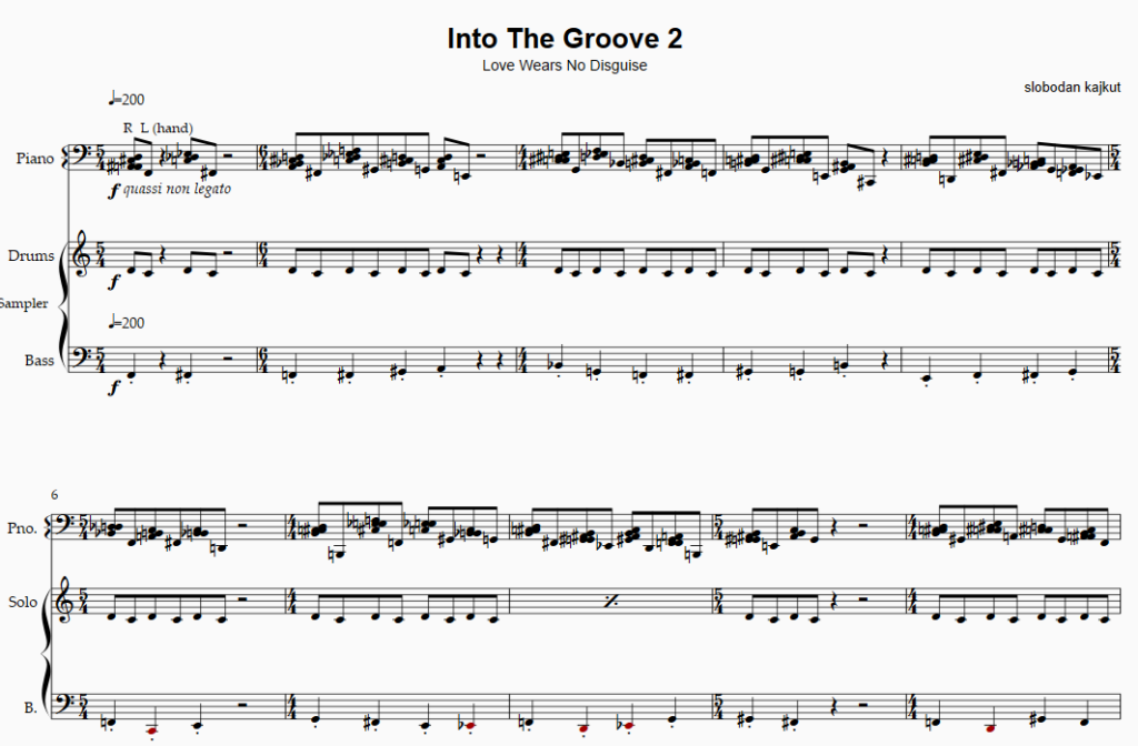 Score excerpt from Into The Groove 2 (Piano, Sampler)